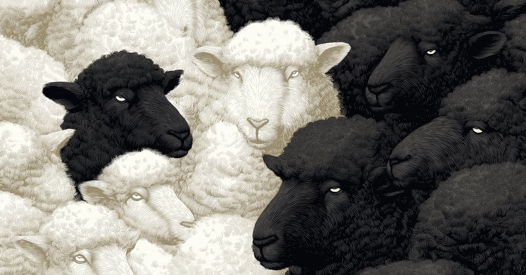 Doch letztlich ist das "schwarze Schaf" kein anderes Wesen – es ist Teil des Ganzen. Vielleicht sieht es anders aus, vielleicht sticht es heraus.